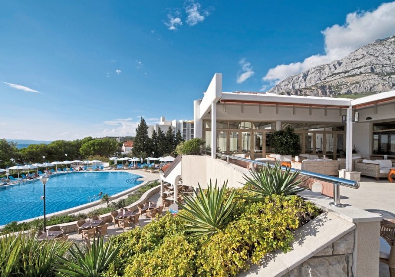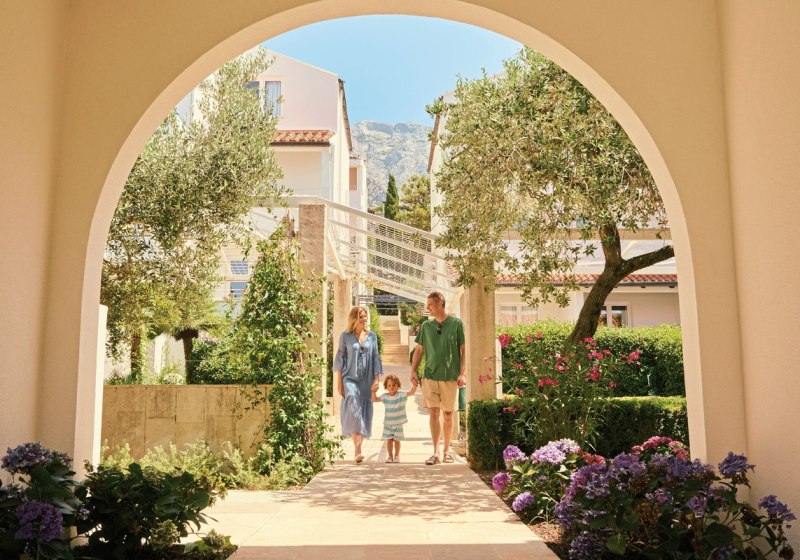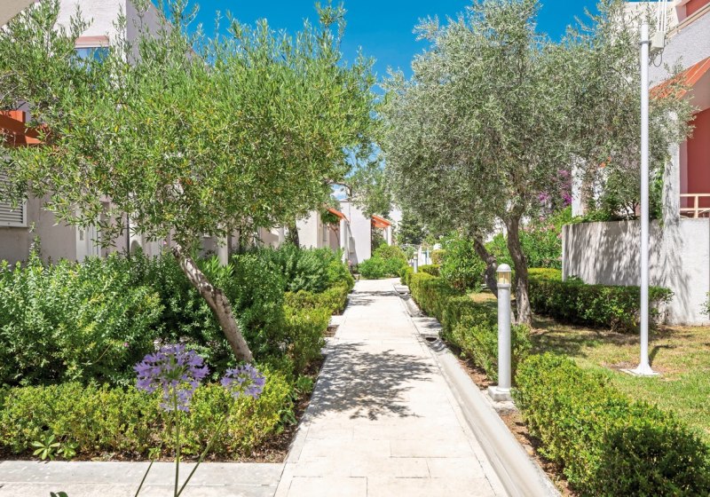 Willkommen im Bluesun Holiday Village Afrodita, einer Anlage mit Villen in einem mediterranen Garten direkt am Kiesstrand Tucepi Beach. Ihr spaziert aus den grünen Wegen direkt zum Wasser, oder nehmt auf der Außenterrasse des Restaurants Platz. Die Stimmung ist entspannt, die Wege sind kurz, die Gemeinschaftsbereiche wirken übersichtlich und gut gepflegt.