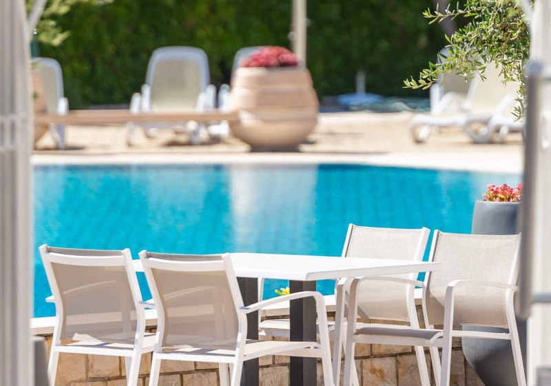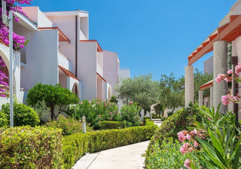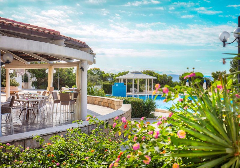 „Für Strandnähe ohne Umwege, mediterranes Gartenflair und bequeme Wege empfehlen wir Bluesun Holiday Village Afrodita Paaren und Familien, die entspannt wohnen, direkt baden und abends mit Live-Musik den Tag ausklingen lassen möchten.“