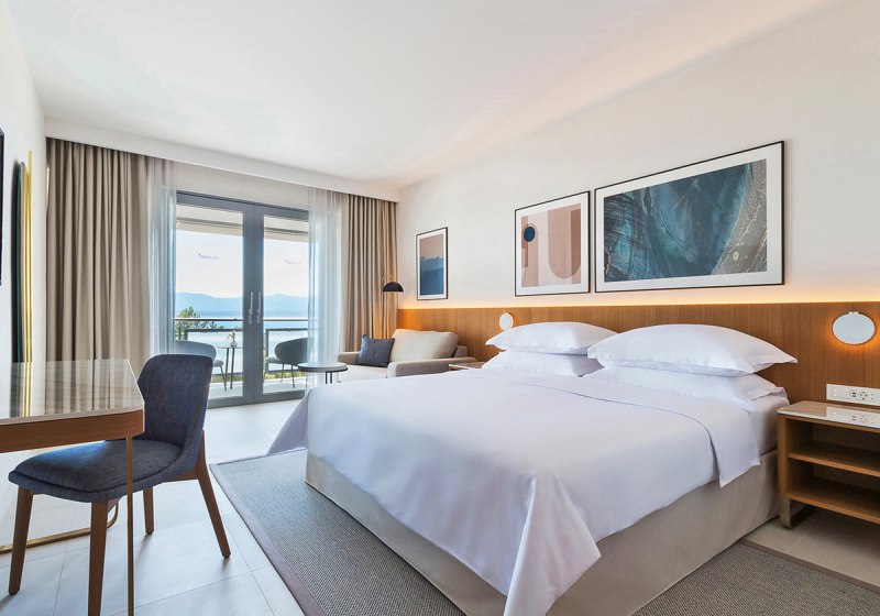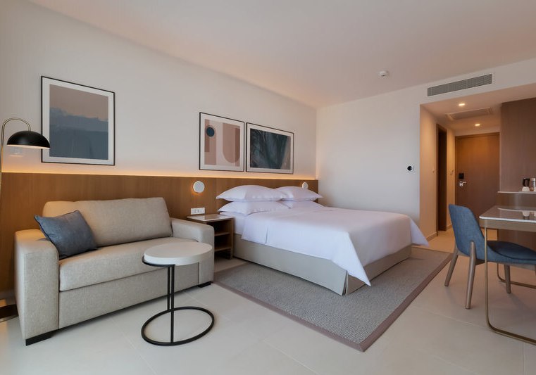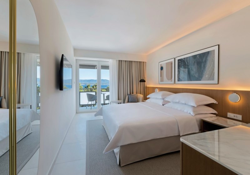 Superior-Zimmer bringen ein Schlafsofa mit, teils Meerseite und/oder Balkon. Ausblicke variieren zwischen Meer, Garten, Pool oder Bergen. Details wie Bademantel, Kosmetikartikel, Kaffee-/Teezubereiter und unterschiedliche Bettvarianten erhöhen den Komfort. Das Hauptgebäude hat vier Etagen, Baujahr 1971, renoviert 2008.
