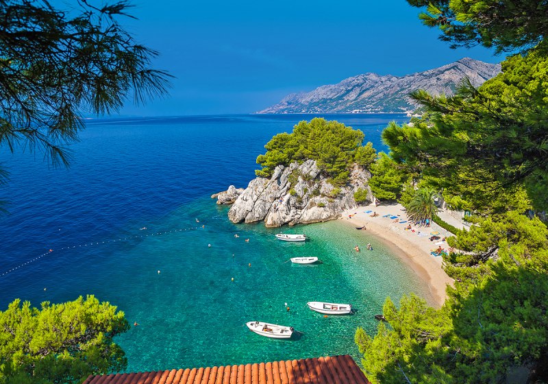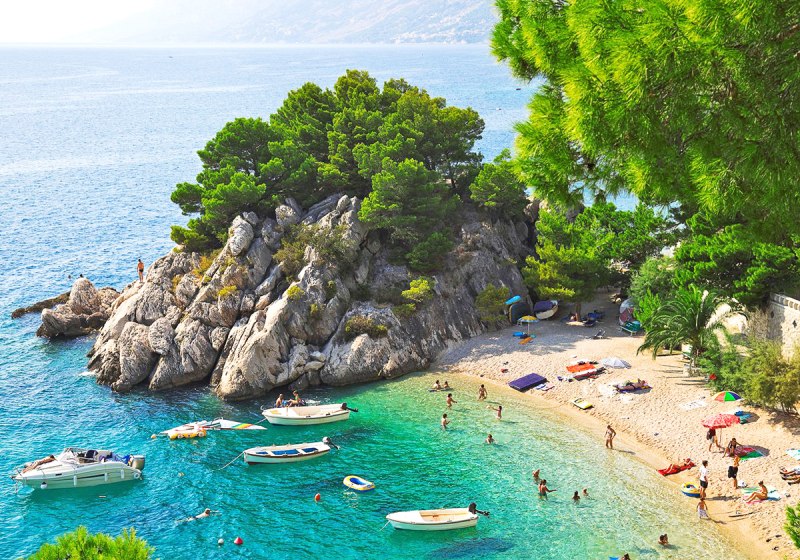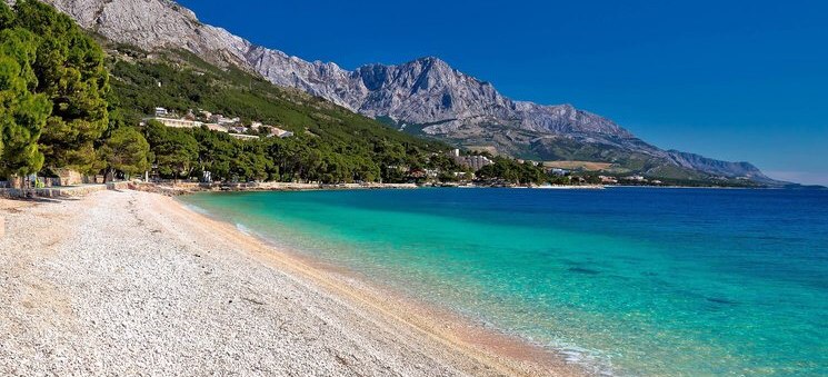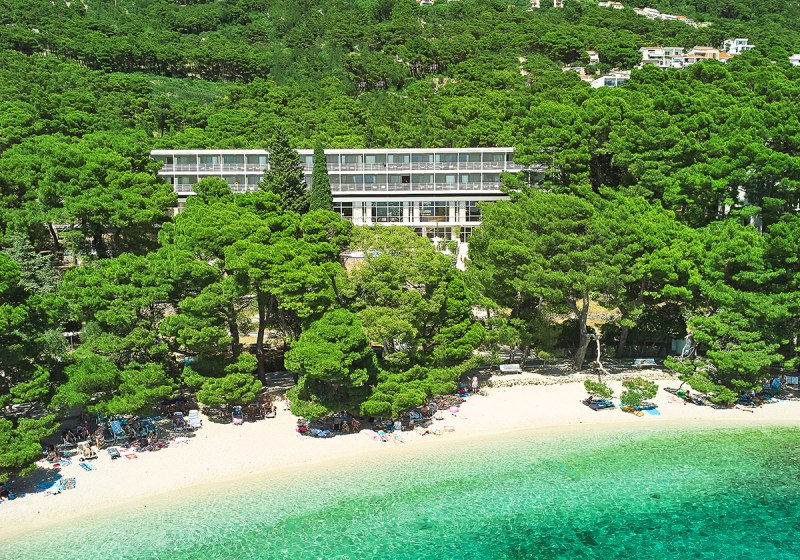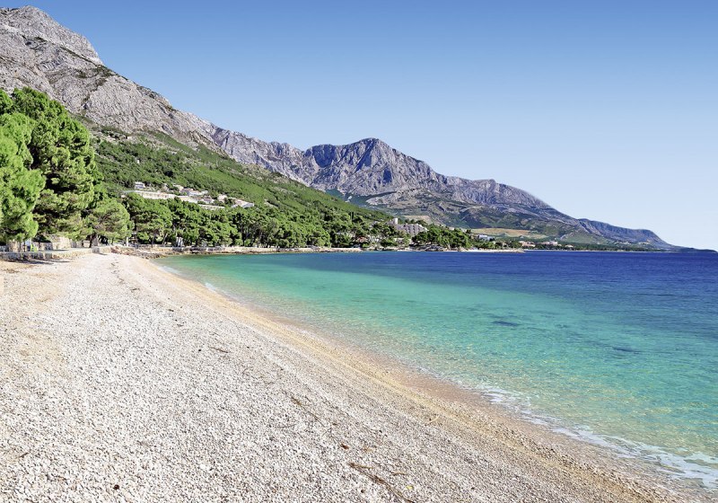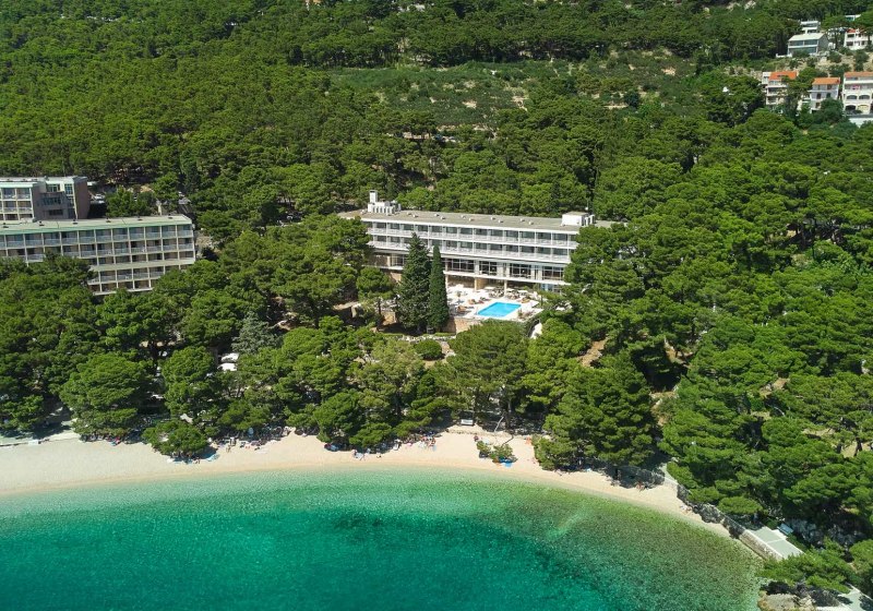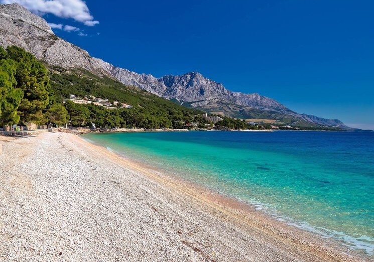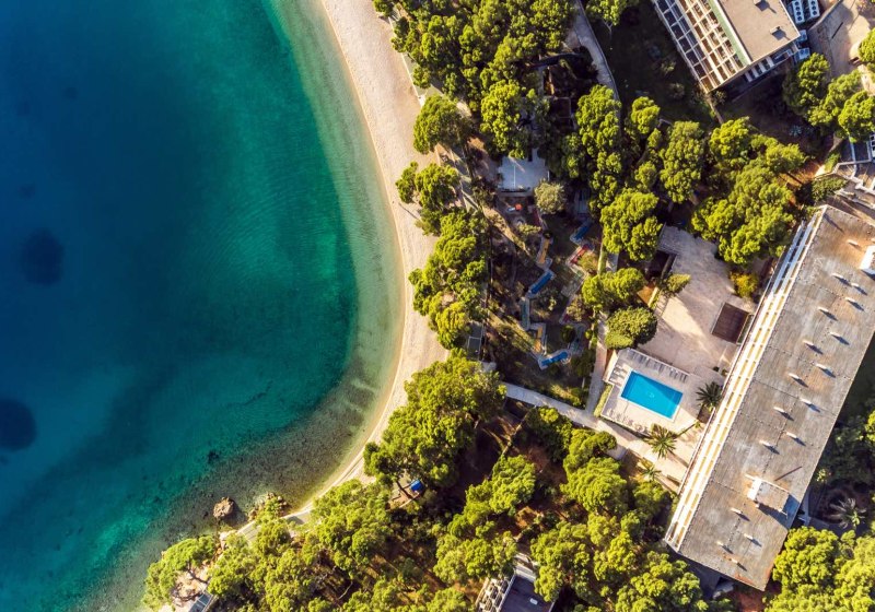 Ihr residiert in Brela an der Makarska Riviera, direkt am Strand. Zum Ortszentrum sind es rund 400 Meter – nah genug für abendliche Bummel, weit genug für Ruhe am Tag. Die Lage spielt ihre Stärken mit kurzen Wegen aus: Ihr wechselt in Minuten zwischen Meer, Promenade und Hotelterrasse. Für die Anreise dient der Flughafen Split in etwa 65 Kilometern Entfernung.