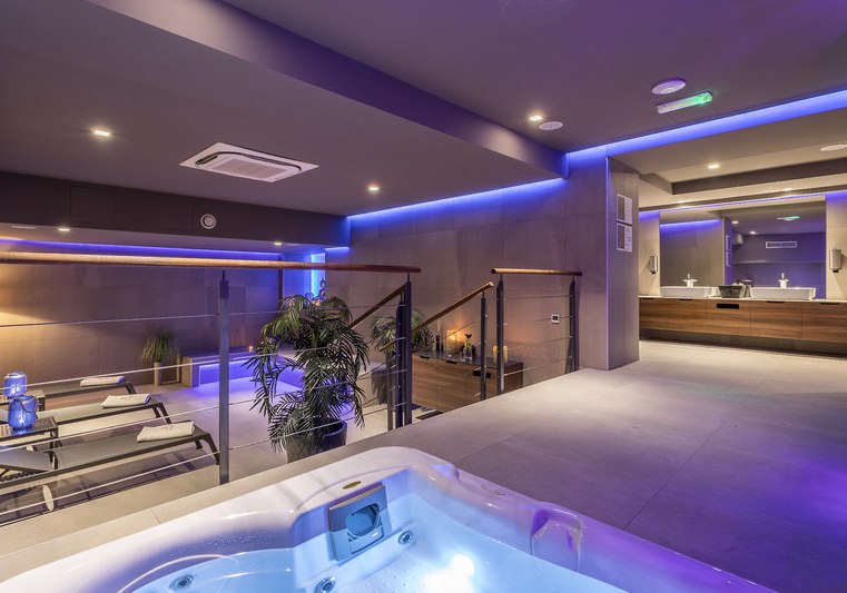 - Spa: Sauna, Dampfbad und Whirlpool bilden eine kompakte Erholungszone.