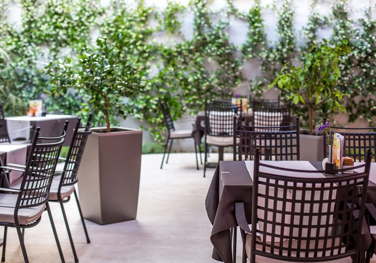 Die öffentlichen Bereiche wirken geordnet und urban: Lobby, Bar, Frühstückssaal und TV-Raum gehen fließend ineinander über. WLAN ist im Hotel verfügbar. Dachterrasse und Garten bieten Luft und Blick, Liegestühle und Sonnenterrasse sorgen für ruhige Zonen. Der Außenpool liefert einen erfrischenden Kontrast zum Stadtspaziergang.