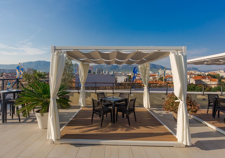 Für euren perfekten Urlaub in Split findet Ihr hier einen aufgeräumten Ausgangspunkt mit À-la-carte-Restaurant, Dachterrasse, Außenpool und praktischer Mobilität vom Shuttleservice bis zur Garage. So bleiben Zeitfenster planbar, Wege übersichtlich und Euer Aufenthalt angenehm fokussiert.