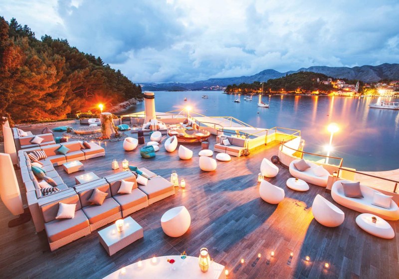 Abends prägen Bars und Terrassen die Atmosphäre. Wer rausmöchte, hat kurze Wege ins Zentrum von Cavtat, etwa einen Kilometer entfernt. So entscheidet Ihr situativ zwischen Hotelambiente und der Promenade mit zusätzlicher Auswahl an Lokalen.