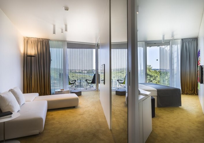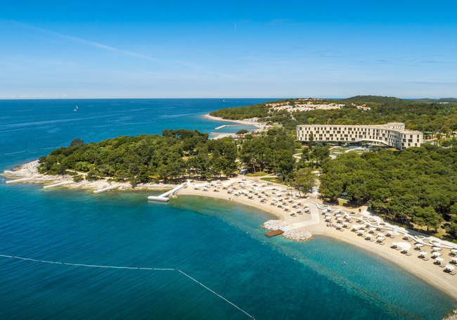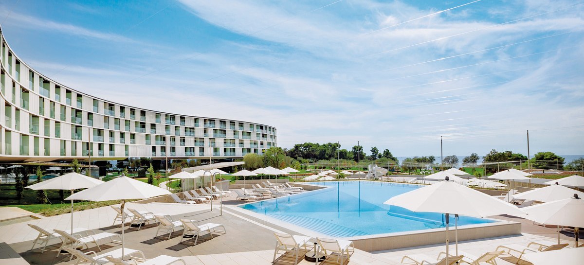 Willkommen auf einer grünen Halbinsel vor Rovinj, wo Ihr im Family Hotel Amarin direkt am Kiesstrand ankommt und Euch sofort in eine durchdachte Welt aus Familienfreude und entspannter Aktivität hineinfindet. Die Architektur wirkt offen, die Wege sind kurz, das Miteinander unaufgeregt organisiert. Draußen bestimmen Meerblick und Poollandschaft den Takt, innen setzt die großzügige Wellness- und Wasserwelt klare Akzente. Kinderbereiche, Spielräume und ein Miniclub schaffen Struktur im Tagesablauf, während Ihr am Strand oder an den Pools Eure Zeit plant.