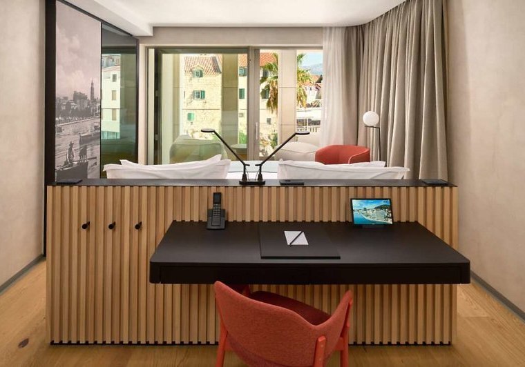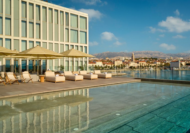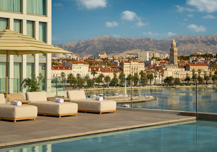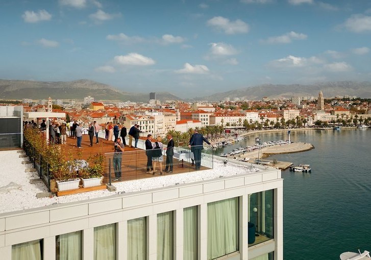 Hotel Ambasador verbindet zentrale Lage in Split, Strandnähe und eine klare Freizeitstruktur mit Außenpool, Spa und Fitnessstudio. Küche und Zimmer sind hervorragend bewertet, Services wie Shuttle, WLAN und Konferenzräume runden das Angebot ab.