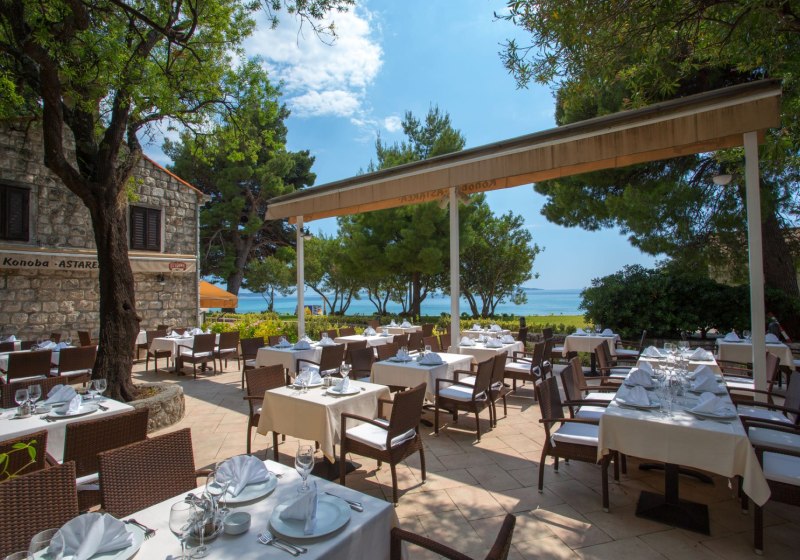 „Für euren perfekten Urlaub am Meer empfiehlt sich Hotel Astarea mit direkter Buchtlage, familienfreundlichen Pools, Animation und Live-Musik sowie schneller Bus- oder Bootsverbindung zur Altstadt von Dubrovnik und nach Cavtat.“