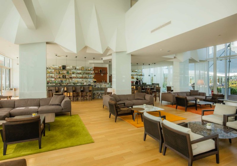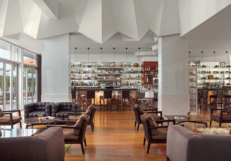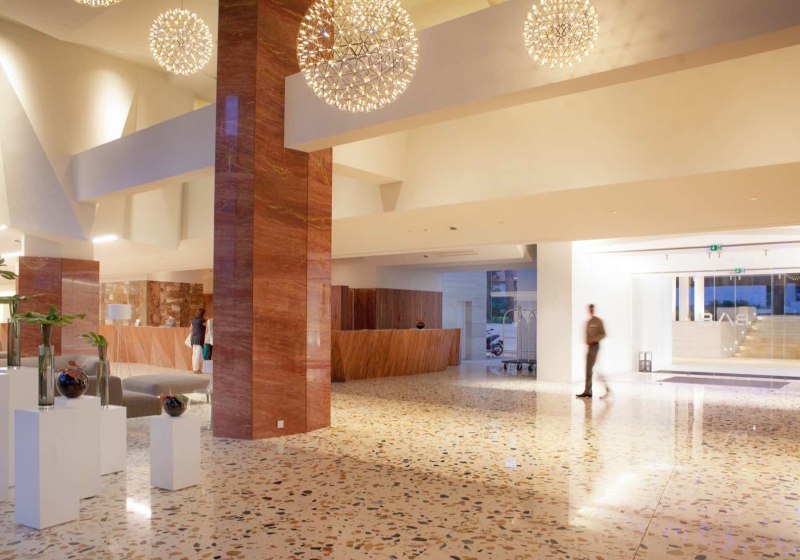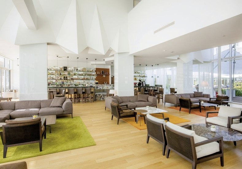 Die öffentliche Fläche wirkt durchdacht: Lobby, Lounge und Foyer bieten Platz für Ruhe und Austausch. Mit 24-Stunden-Rezeption, Concierge-Service und kostenlosem WLAN bleibt Ihr unabhängig. Innen- und Außenpool, Sonnenterrasse sowie Liegen und Schirme an Pool und Strand strukturieren entspannte Tage am Wasser.