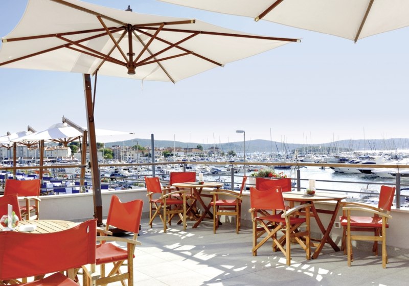 Im Hotel In wohnt Ihr direkt am kleinen Hafen von Biograd na Moru – mit Blick auf Boote, die ruhig ein- und auslaufen. Das Haus ist kompakt, klar strukturiert und aufgeräumt, mit 44 Nichtraucherzimmern, Panoramalift zur Sonnenterrasse und kostenlosem WLAN. Die Atmosphäre wirkt angenehm konzentriert: kurze Wege, funktionale Bereiche, ruhige Ecken zum Verweilen. Für erholsame Tage im Urlaub verbindet Ihr maritimes Flair mit solider Hotel-Infrastruktur.