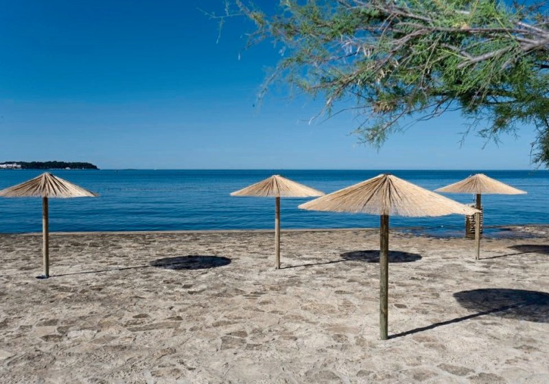 Ihr erreicht den Kiesstrand nach etwa 100 Metern – ein kurzer Spaziergang durch die Anlage, dann beginnt Euer Badetag. Das Zentrum von Poreč liegt rund 3 Kilometer entfernt; so kombiniert Ihr Badezeiten mit Abstechern in die Stadt. Eine Bushaltestelle befindet sich in circa 50 Metern, Flughäfen liegen in Pula (etwa 60 Kilometer) und Rijeka (ungefähr 130 Kilometer). Highlight: Kurze Distanzen zum Strand, klare Orientierung zu Stadt und Verkehr.
