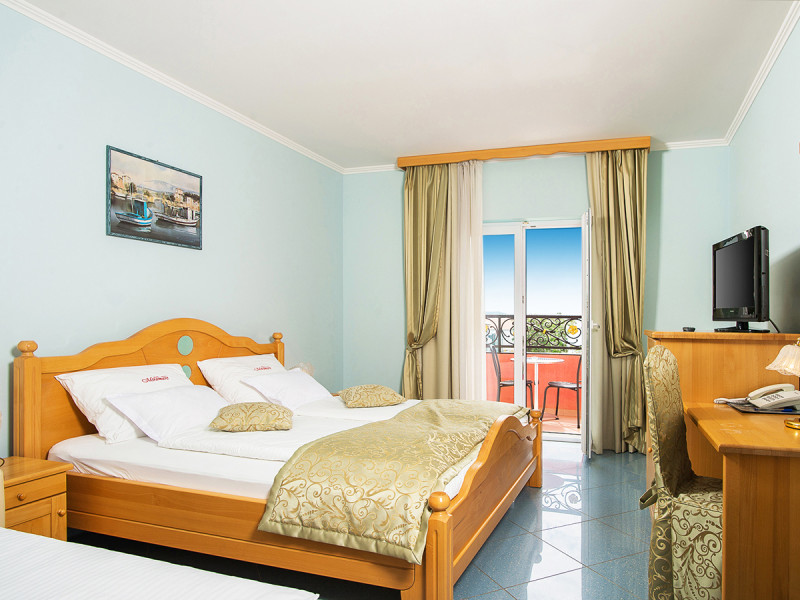 • Klimaanlage • Balkon (je nach Zimmerkategorie) • Haartrockner • Minibar (gegen Gebühr) • Safe (kostenfrei) • Meerblick (je nach Zimmerkategorie) • Schlafsofa • Hosenpresse • Fernseher • rollstuhlgerechte Zimmer (auf Anfrage) • WiFi (kostenfrei) • Gartenblick