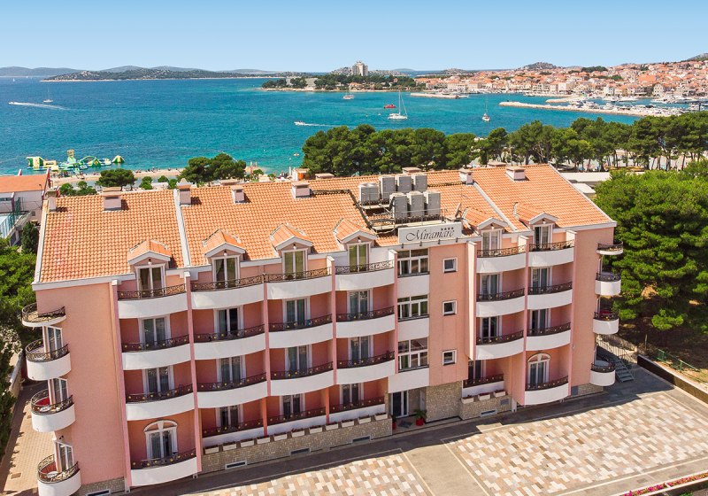 Willkommen im Hotel Miramare in Vodice, wo Ihr mit 61 Zimmern ein überschaubares Haus erlebt, das durch klare Strukturen und praktische Wege überzeugt. Die Atmosphäre ist gepflegt und angenehm ruhig, der Alltag rückt am Außenpool mit Liegestühlen und Sonnenschirmen in den Hintergrund. Ihr startet mit stabilem WLAN, 24‑Stunden‑Rezeption und solider Servicebasis entspannt in Eure Tage zwischen Meer und Stadt.