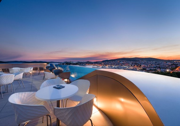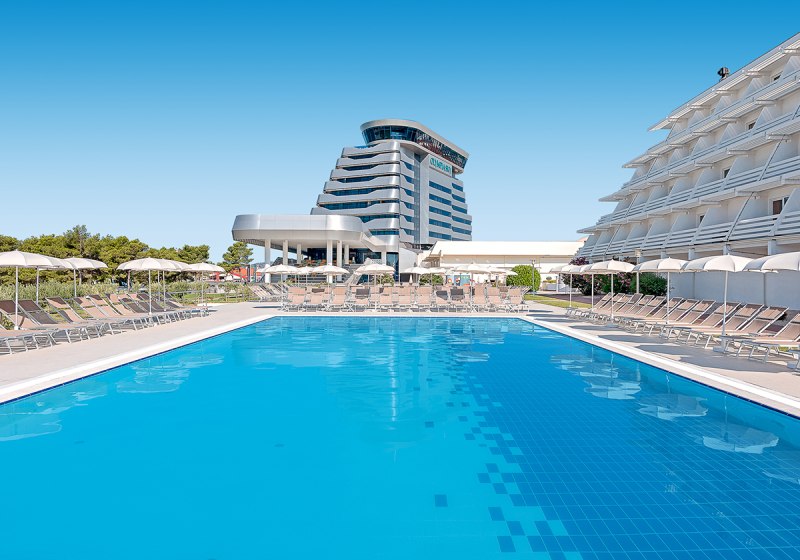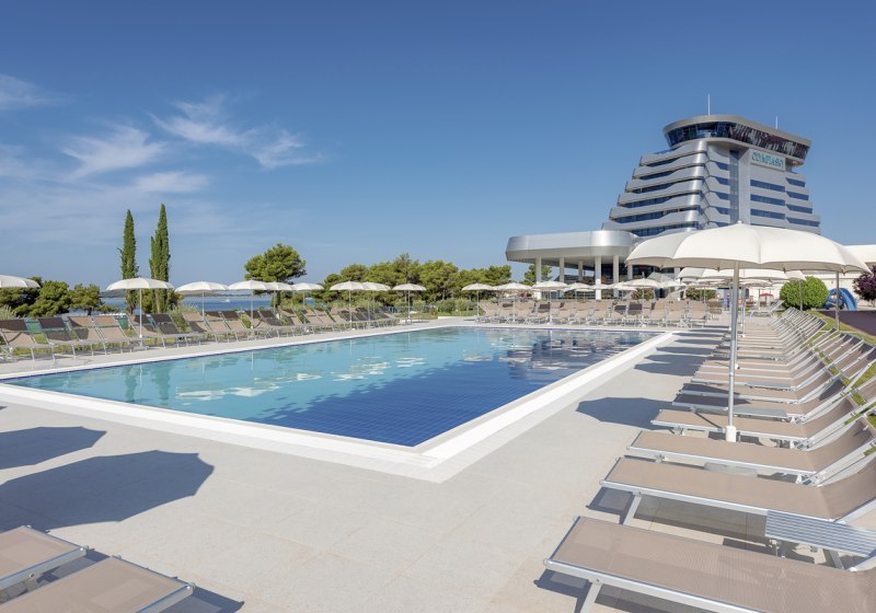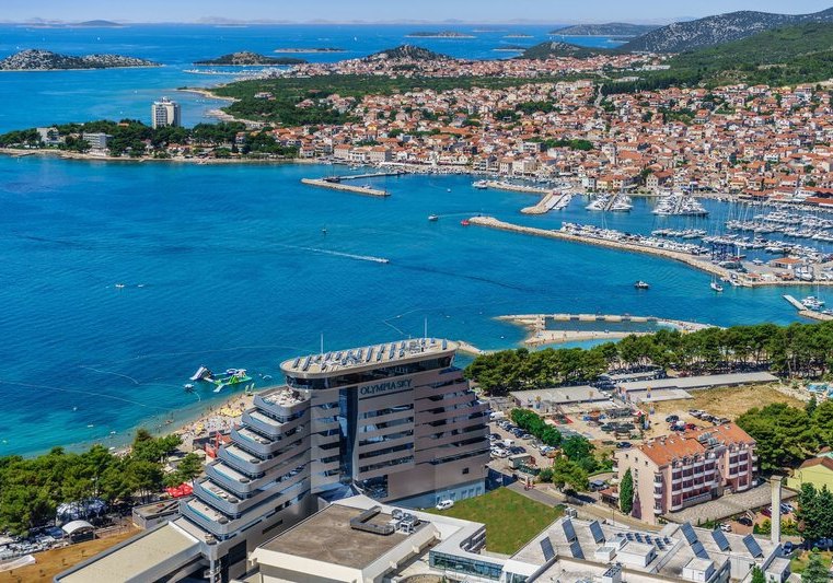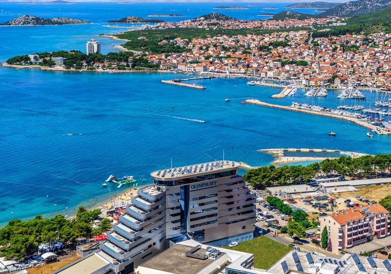 Hotel Olympia Sky empfängt Euch direkt am Kiesstrand von Vodice mit klarer Struktur, viel Licht und kurzen Wegen. Die Verbindung aus moderner Architektur und funktionalen Bereichen schafft Raum für entspannte Tage am Wasser und aussichtsreiche Abende hoch über der Küste. Familien, Paare und Abenteurer und Aktivurlauber finden hier gleichermaßen stimmige Bedingungen.