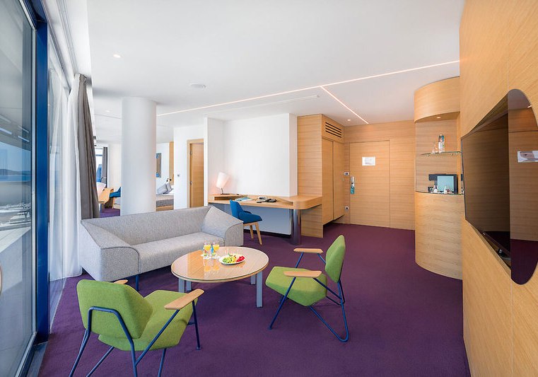 Ihr gleitet mit dem Lift zur Sky-Etage, lasst den Blick vom Infinitypool schweifen und wechselt später über die Passage zum benachbarten Hotel Olympia. Zwei Restaurants verteilen die Kulinarik über Garten- und Höhenlage, während vier Pools, ein Fitnessraum in der 8. Etage und die Spa- und Relaxzone Euren Rhythmus bestimmen. im Urlaub wirkt jeder Tag klar strukturiert und angenehm unaufgeregt.