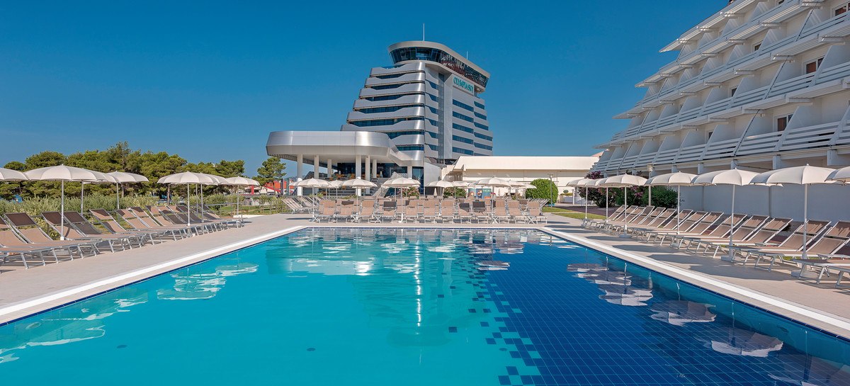 „Für Badefans mit Sinn für kurze Wege empfiehlt sich Hotel Olympia dank direkter Strandlage, Innen- und Außenpool sowie gut abgestimmten Familien- und Sportangeboten – ideal für den Strandurlaub mit flexibel wählbarer Verpflegung.“