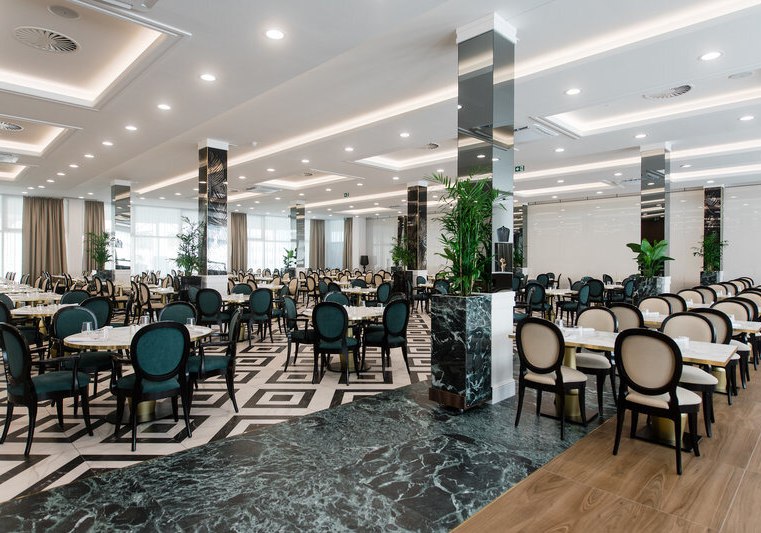 Die öffentlichen Bereiche sind klar organisiert: Empfangshalle mit 24‑h‑Rezeption, mehrere Lifts, Wi‑Fi und praktische Services wie Geschäfte, Friseur und Geldautomat. Sonnenplätze findet Ihr am Außenpool mit Terrasse; Liegen und Sonnenschirme stehen am Pool bereit. Parkplätze und Garage ergänzen die Anreiseoptionen.