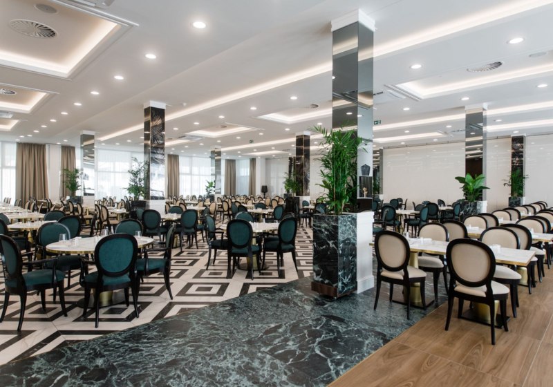 Hotel Olympia verbindet direkte Strandlage mit kurzen Wegen zwischen Pool, Bars und Sportbereichen. Familien profitieren von Miniclub, Kinderpool und Spielplatz, Aktive von Fitness, Tennis und Wassersport. Kulinarisch wählt Ihr flexibel zwischen Buffet, À‑la‑carte und Strandbar.