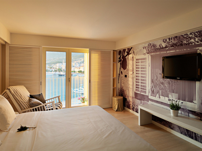 Die Atmosphäre ist entspannt: morgens Kaffee in der Café-Bar, mittags ein Platz an der Taverne-Pizzeria, abends ein Spaziergang am Meer. Wer strukturierten Komfort schätzt, findet hier verlässliche Services – vom Konferenzraum „Žalo“ bis zu Liegen am Süßwasser-Außenpool. Highlight: Promenade & Strand. 50 Meter zum Strand, direkt an der Meerespromenade.