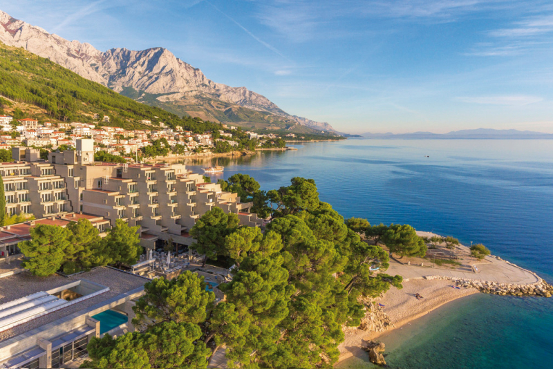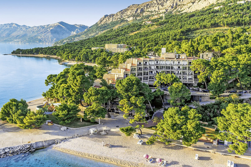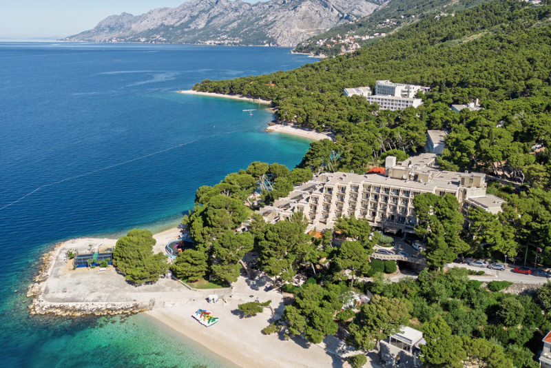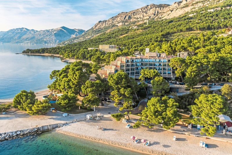 Das Hotel befindet sich in einer zentralen Lage, nur 250m vom Stadtzentrum entfernt und direkt am Strand, getrennt nur durch eine Uferpromenade. Der kilometerlange Kieselstrand 'Brela Beach' ist nur 50 m entfernt und der beleibte Ort Makarska ist nur 10 km entfernt. Der Flughafen Split sowie das Stadtzentrum von Split sind ebenfalls leicht erreichbar. Außerdem ist das Hotel ein perfekter Ausgangspunkt für Ausflüge in den Park Biokovo.