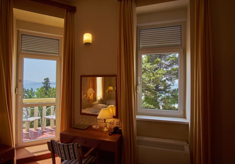 Im Hotel Vila Ružica wohnt Ihr in einem Strandhotel, das 2010 zuletzt renoviert wurde und mit 54 Zimmern in Haupt- und Nebengebäude angenehm überschaubar bleibt. Die Atmosphäre wirkt unkompliziert und gut organisiert, mit klaren Strukturen vom Empfang über die Gemeinschaftsbereiche bis zur Sonnenterrasse. Dank Klimaanlage, Aufzug und sicherer Verwahrung im hauseigenen Safe fühlt sich Euer Ankommen geordnet an.
