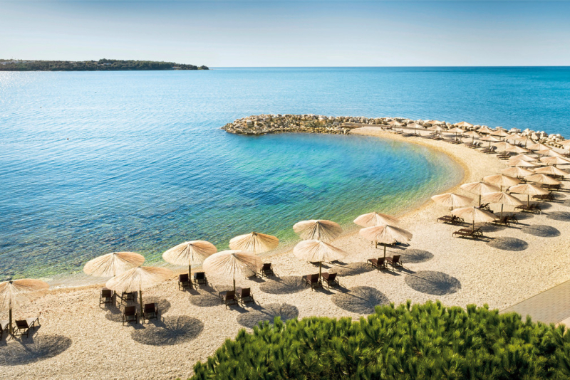 Das Aminess Vival Maestral Hotel ist ein 4-Sterne-Hotel der Hotelkette Aminess und zeichnet sich durch seine hervorragende Lage direkt am ruhigen Fluss Mirna und am azurblauen Meer aus. Die Gäste genießen den hoteleigenen flach abfallenden Kiesstrand in nur 100 m Entfernung sowie die gepflegte Außenanlage und das abwechslungsreiche Animationsprogramm. Das Hotel ist geschmackvoll eingerichtet und bietet eine Vielzahl von Annehmlichkeiten wie einen Pool, mehrere Restaurants und Bars, einen Wellnessbereich und ein Fitnesscenter. Zudem ist das Hotel besonders kinderfreundlich mit speziell auf sie abgestimmten Annehmlichkeiten wie einem Miniclub, Kinderanimation und einer Mini-Disco.Bewertung