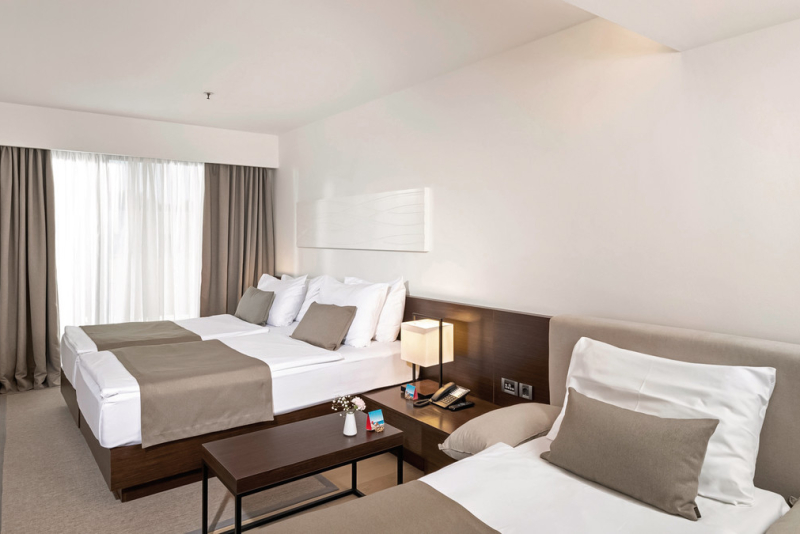 Das Hotel verfügt über 268 Zimmer/Wohneinheiten, die alle komfortabel und modern eingerichtet sind. Sie sind mit einem Badezimmer mit Bad oder Dusche/WC, Föhn, Sat.-TV, Telefon, WLAN, Safe, Minibar, Klimaanlage, Heizung und einem Balkon ausgestattet. Roomservice steht gegen Gebühr zur Verfügung. Darüber hinaus können Sie gegen Gebühr ein Babybett anfordern.