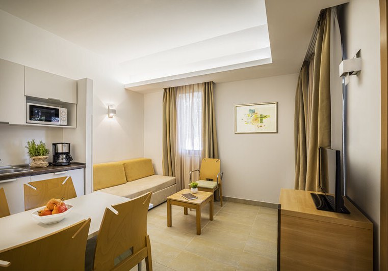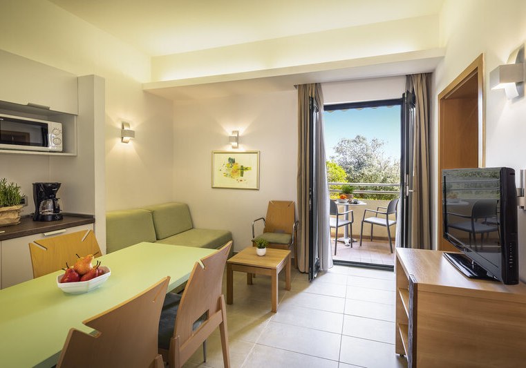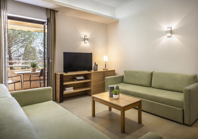 Bei den Kategorien wählt Ihr: Familienzimmer mit Verbindungstür, Superior-Zimmer mit Schlafsessel und Balkon zur Meerseite, Appartements mit separatem Schlafzimmer und Kitchenette sowie Familienappartements mit zusätzlicher Schlafcouch. So passt Ihr Raum und Funktion Euren Plänen an – vom kompakten Doppelzimmer bis zur praktischen Apartmentlösung.