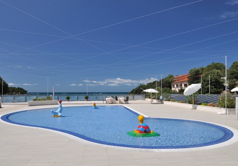 Ihr wohnt in Vrsar direkt an Naturstränden mit Felsplateaus und Kiesbereichen, die das Resort umrahmen. Die Altstadt erreicht Ihr in wenigen Minuten; das Stadtzentrum liegt rund 500 Meter entfernt. Kurze Wege führen Euch vom Pool an den Strand und weiter in die Gassen von Vrsar, wo Ihr mediterrane Atmosphäre in unmittelbarer Nachbarschaft erlebt.