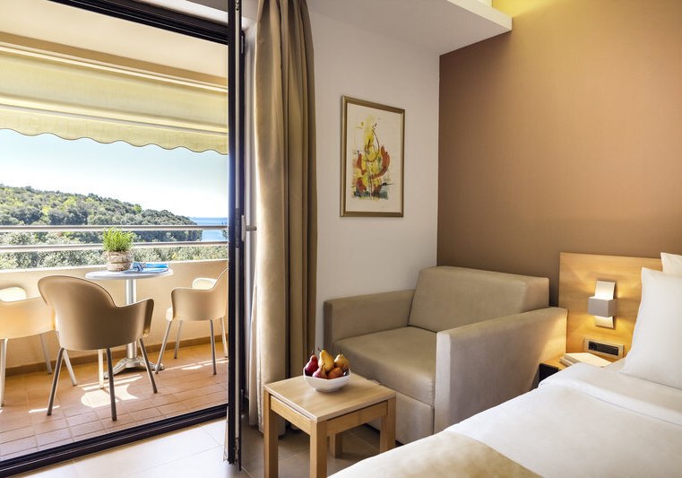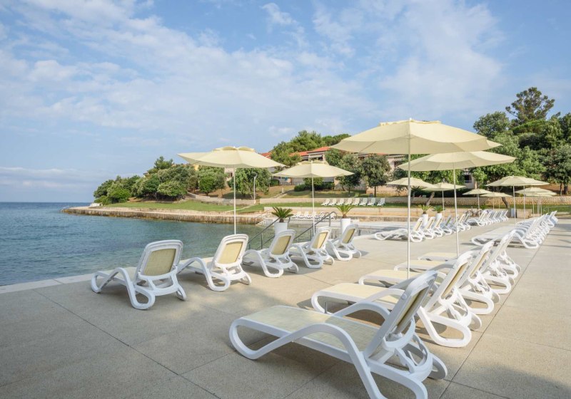 Resort Petalon liegt in Vrsar direkt an Naturstränden mit Felsplateaus und Kies. Ihr lebt hier in einem weitläufigen Resort mit 176 Zimmern und 48 Appartements, umgeben von Meerblicken und kurzen Wegen. Animation am Tag und Abend erzeugt eine lebendige Stimmung, während die Wege zur Altstadt angenehm kurz bleiben.
