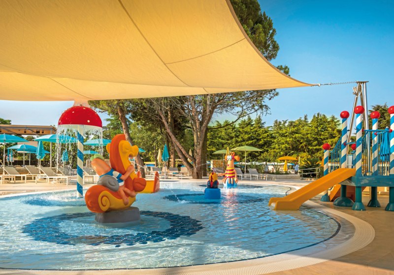 Im Valamar Parentino Hotel wohnt Ihr in Poreč zwischen Pinien und Meer, nur wenige Schritte vom Strand entfernt. Die weiträumigen Außenbereiche mit Pool und separatem Kinderbecken geben Eurem Tag Struktur: morgens ins Wasser, mittags ein schattiger Platz, abends ein Spaziergang in Richtung Altstadt. Familien und Strandurlauber finden hier einen klaren, gut organisierten Rahmen, der entspannte Abläufe ermöglicht.