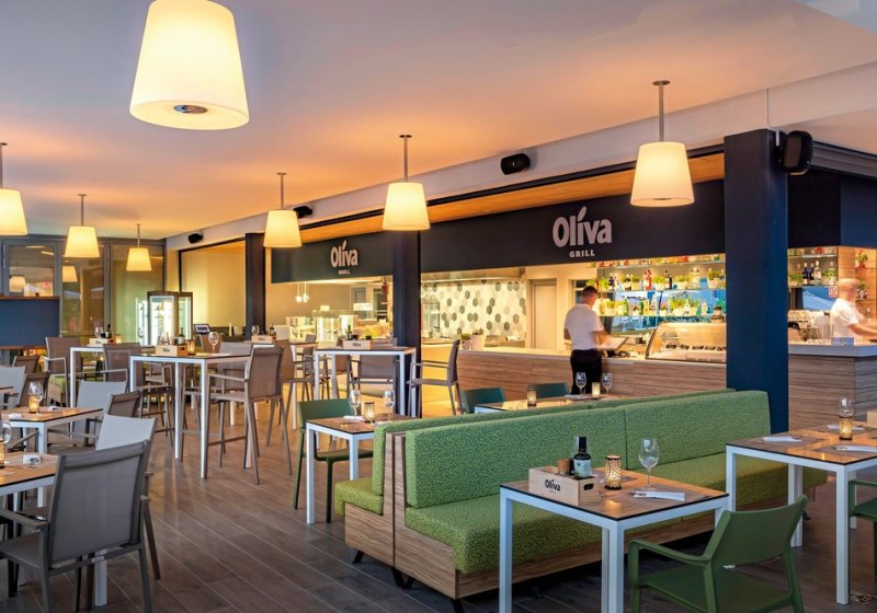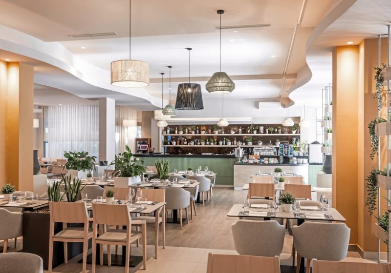 Im Hauptrestaurant schaut Ihr den Köchen beim Show‑Cooking zu, während auf der Terrasse die Abendluft vom Meer herüberzieht. WLAN ist im ganzen Haus inklusive, der Stil wirkt modern und funktional, ohne Schnörkel. Praktisch: Aufzüge verbinden die Etagen, und ein überwachter Fahrradraum richtet sich an Aktive. Hunde sind auf Anfrage willkommen. Highlight: Familienfreundliche Strandnähe mit Show‑Cooking und durchdachtem Poolbereich.