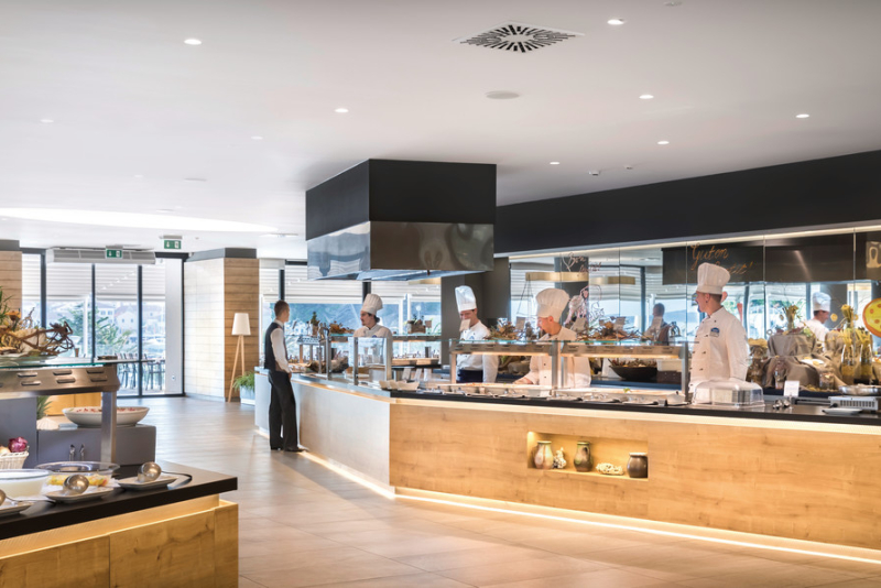 Das Hotel bietet zwei Restaurants, an denen die Gäste zwischen Buffetfrühstück und Abendessen, inklusive Softdrinks, wählen können. Glutenfreie Mahlzeiten und vegetarische Kost sind auch verfügbar. Zudem gibt es zwei Bars im Hotel - eine Lobbybar und eine spektakuläre Poolbar 'The Beat Beach Club', die auch als Snackbar genutzt werden kann.Ausstattung