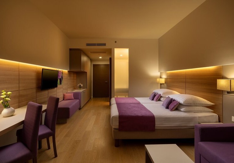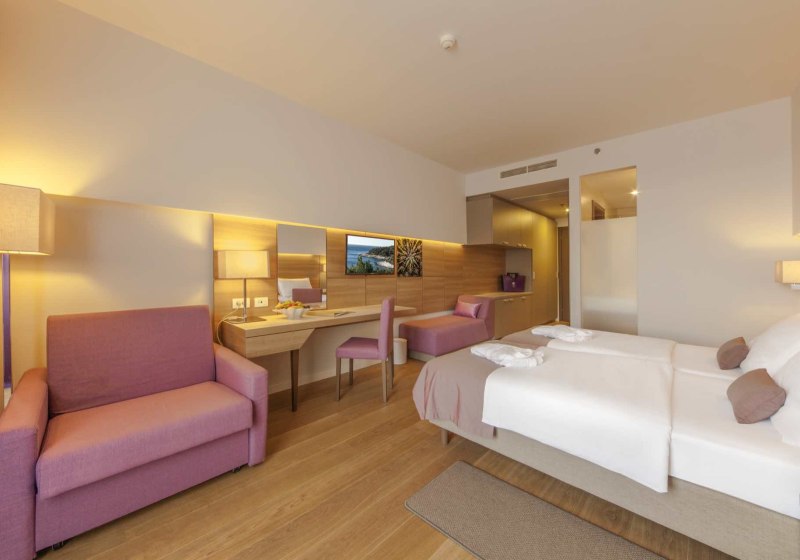 Wer aktive Tage und entspannte Abende verbinden will, findet hier klare Angebote: Tennis, Outdoor‑Fitness, Wanderwege, Spa mit Saunen und Infinitybereich. Die Zimmeroptionen decken Paare, Familien und längere Aufenthalte ab – mit Ausblicken von Meer bis Wald, passend für euren Urlaub auf Lošinj.