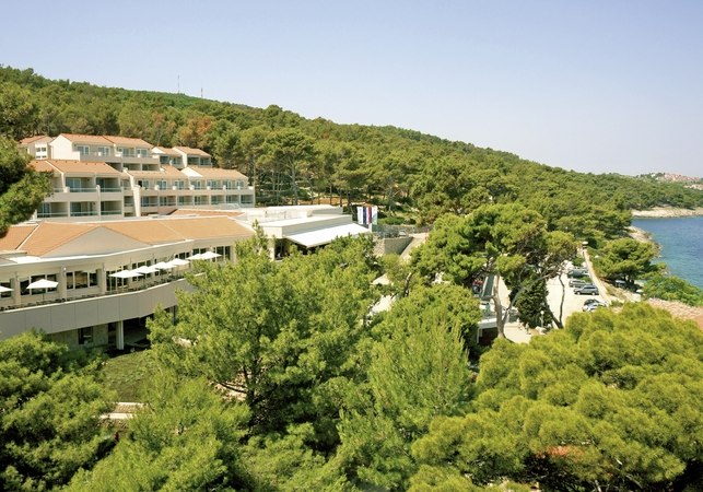 Die Adresse Sestavine 17 führt Euch nach Veli Lošinj auf der Insel Lošinj. Das Hotel thront auf einer Landzunge oberhalb des Meers, die Wege hinunter sind kurz und aussichtsreich. Am Steinstrand mit Blauer Flagge nutzt Ihr Liegen und Sonnenschirme, die Umgebung bleibt angenehm ruhig und maritim geprägt.