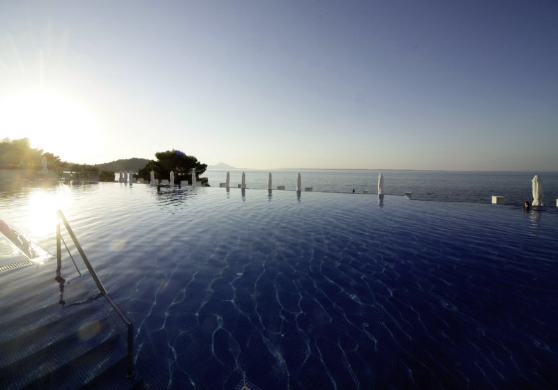 Vitality Hotel Punta liegt auf einer Landzunge oberhalb des Meers in Veli Lošinj und wirkt zugleich naturnah und strukturiert. Ihr erreicht die Küste direkt, der Steinstrand trägt die Blaue Flagge. Weitläufige Terrassen, beheizte Meerwasserpools und ruhige Rückzugsorte prägen den Aufenthalt. Highlight: Landzunge & Blaue Flagge, klare Wasserqualität und aussichtsreiche Plätze.