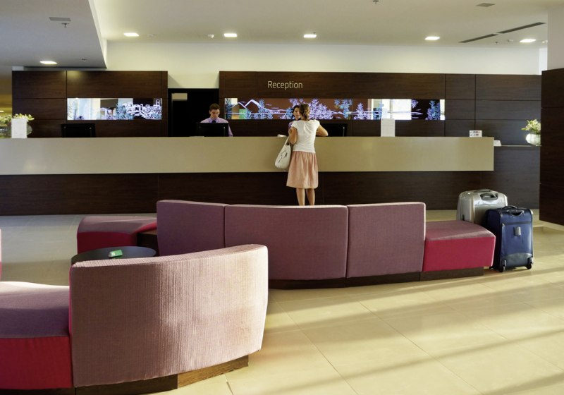 - Viele Bereiche: Rezeption, Lounges, Terrassen und Shops strukturieren den Aufenthalt.