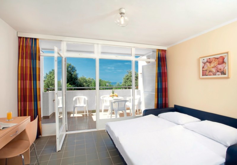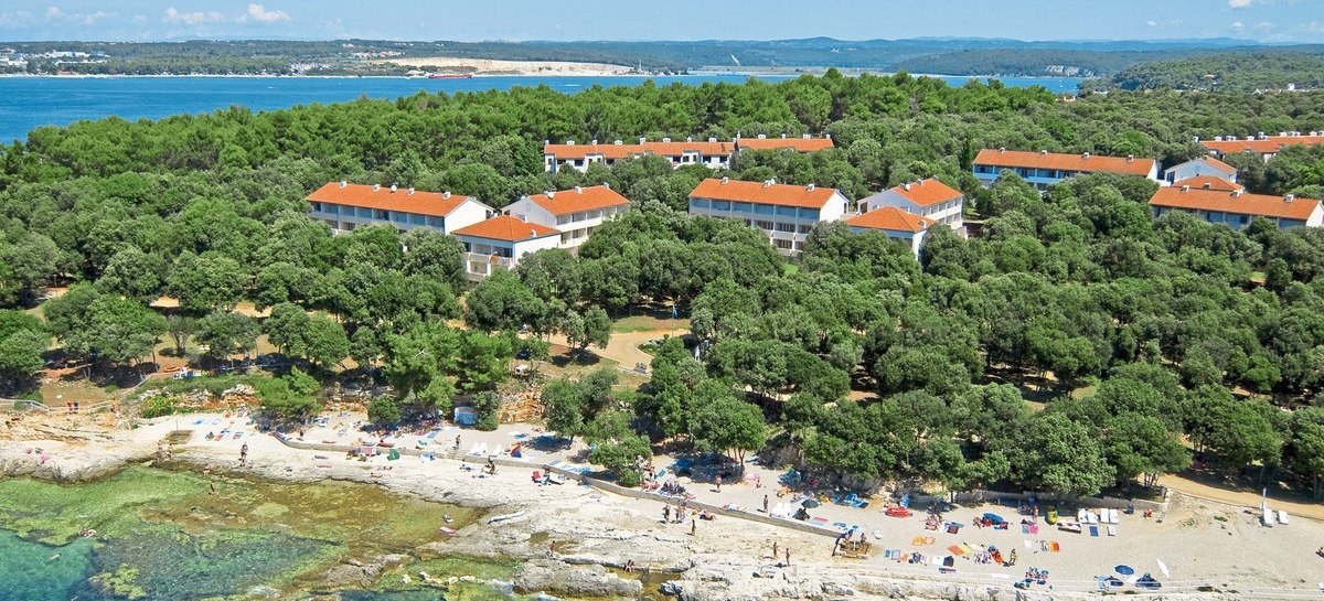 Im Lanterna Resort lebt Ihr das entspannte Küstengefühl von Poreč mit der Freiheit eines Apartmenthotels. Die weitläufige Anlage mit Haupt- und 19 Nebengebäuden verteilt das Geschehen angenehm über grüne Wege, Terrassen und den direkten Zugang zum Meer. Statt steifer Rituale erwartet Euch funktionale Weite: Ihr parkt bequem, versorgt Euch im Supermarkt, stöbert in Shops und startet von hier aus zu Euren Tagen am Kiesstrand Crnika. Familien finden Platz, Paare Struktur, Aktivreisende kurze Wege zu Sport und Verleih.