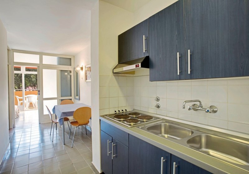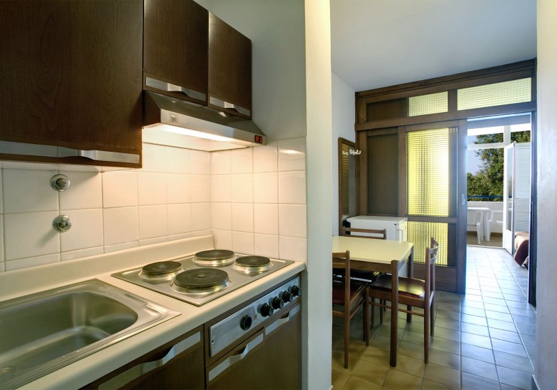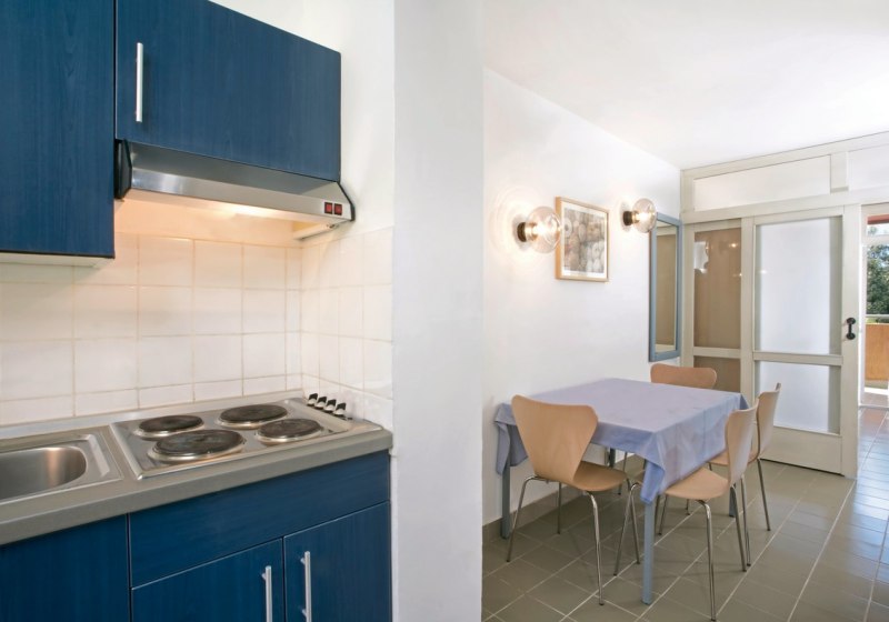 Ihr wohnt in Appartements, die auf Selbstbestimmung ausgelegt sind. Ein Wohnbereich mit Schlafsofa ergänzt das Schlafzimmer mit zwei Einzelbetten – ideal, wenn Ihr zu dritt oder viert reist. Der Balkon zur Meerseite schafft Luft und Blickachsen, die den Tagesrhythmus bestimmen. In der Küche findet Ihr Koch- und Essgeschirr für unkomplizierte Mahlzeiten zwischendurch. Das Badezimmer ist mit Dusche ausgestattet, sachlich und funktional.