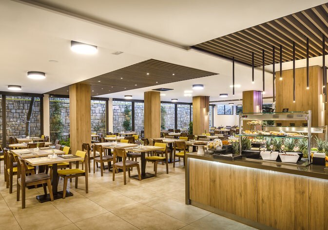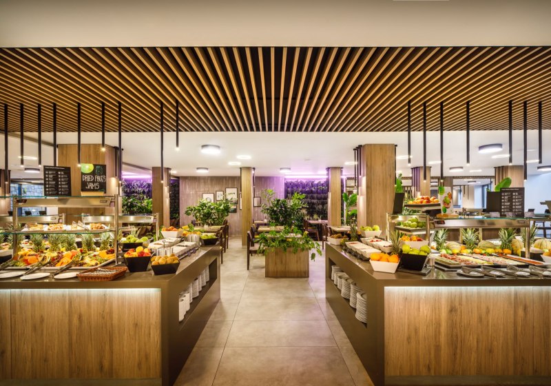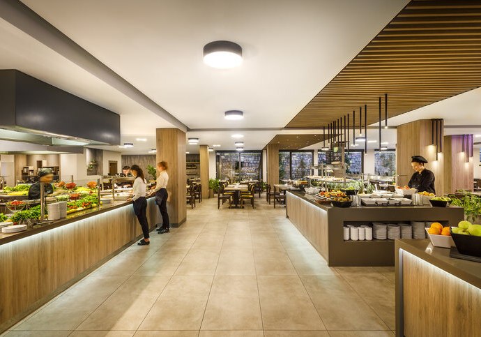 Verpflegungsangebote decken Frühstück, Mittag- und Abendessen ab; auch Diät- und glutenfreie Optionen sind vorgesehen. Alkoholfreie und alkoholische Getränke sind erhältlich. Die Wege zwischen Strand, Pool und den Restaurants sind kurz, Pausen gelingen ohne großen Planungsaufwand. Highlight: Mehrere Spezialitätenstationen ergänzen das Hauptrestaurant sinnvoll.
