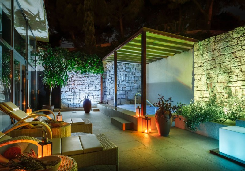 Für Transfers dient die stündliche Bootsverbindung zwischen Insel und Rovinj; damit bleibt Ihr flexibel zwischen Stadt und Resort. Ergänzend stehen Konferenz- und Gesellschaftsbereiche sowie verschiedene Shops und Service-Stationen zur Verfügung. Die Gartenflächen und Terrassen schaffen Abstand zwischen den Zonen, ohne weite Wege zu verlangen. Highlight: Zwei Pooltypen plus Strandabschnitte decken Badevorlieben präzise ab.