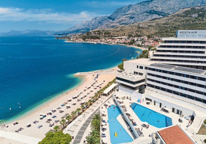 Im Medora Auri Family Beach Resort wohnt Ihr nah am Meer und doch mitten im Geschehen. Nur ein kurzer Weg trennt Euch vom hoteleigenen Sand-/Kiesstrand, während zwei beheizbare Außenpools und ein separates Kinderbecken Raum für entspannte Stunden eröffnen. Abends sorgt Live-Musik für eine angenehme Stimmung, tagsüber bringt ein strukturiertes Kinderprogramm Rhythmus in Euren Tag. Haustiere sind auf Anfrage willkommen – praktisch, wenn Ihr nicht ohne Vierbeiner reist.