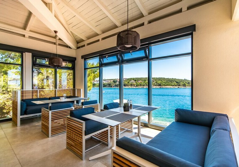 Ihr spürt die Nähe zum Wasser an jeder Ecke: 50 Meter trennen Euch vom Kies‑, Fels‑ und Steinstrand, auf der Sonnenterrasse blitzt der Salzwasserpool mit Kinderbecken und Rutsche. Drinnen ergänzt ein Spa mit Sauna und Dampfbad die ruhigen Momente. Kulinarisch führt der Weg vom Restaurant zu gleich vier Bars, vom Frühstück bis zur Halbpension – mit Optionen für vegetarische, vegane, gluten‑ oder laktosefreie Kost. Highlight: Kino im Hotel mit Programm für entspannte Abende ohne lange Wege.