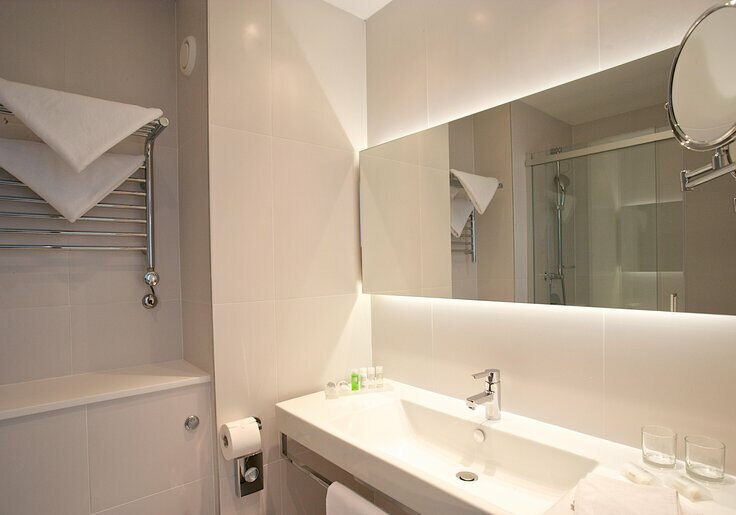 In den Zimmern trefft Ihr auf Funktion und Ruhe: individuell regelbare Klimaanlage und Heizung, Flatscreen‑Sat‑TV, Safe, Minibar und Wasserkocher strukturieren den Alltag. Das Badezimmer ist mit Dusche ausgestattet; Bademäntel, Haartrockner, Kosmetikartikel und Vergrößerungsspiegel bringen Komfort in die Morgenroutine.