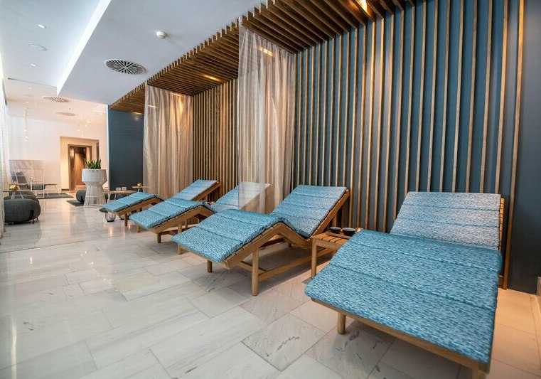 Das Spa setzt auf klare, funktionale Erholung: Sauna und Dampfbad, dazu eine Sonnenterrasse für ruhige Minuten nach dem Bad im Salzwasserpool. Wer gezielt entspannen möchte, bucht Massagen oder Anwendungen im Schönheitssalon – von klassischen Treatments bis Anti‑Aging‑Programmen.