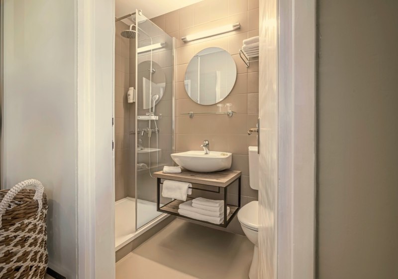 Die Bäder sind mit Dusche oder Bad/WC ausgestattet. In einigen Zimmern liegt die Ausrichtung zur Meerseite. Auf Anfrage erhaltet Ihr Babybetten für die Allerkleinsten. Die schlichte, funktionale Ausstattung unterstützt Euren Rhythmus zwischen Strand, Pool und Ausflügen – mit genau den Details, die den Tagesablauf geschmeidig halten.
