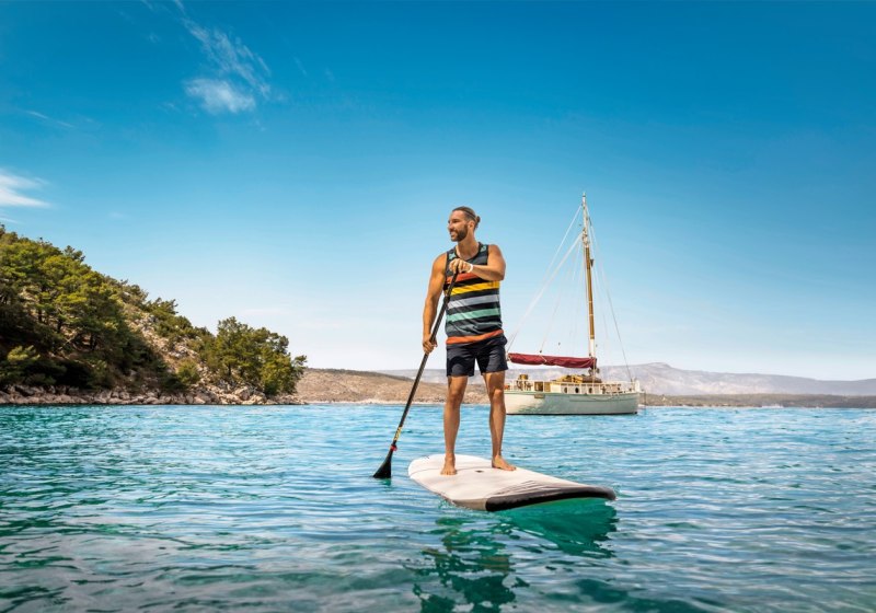 Das Aktivangebot deckt Wasser, Land und leichte Fitness ab. Am und im Wasser: Schnorcheln, Tauchen, Windsurfen, Kajak und Wasserski sowie weitere Wassersportarten. Für strukturierte Bewegung sorgen Aqua-Fitness und Aerobic, während Ihr im Fitness-Studio an Geräten trainiert oder bei Yoga den Fokus setzt.