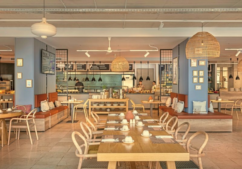 Ihr wählt zwischen Übernachtung mit Frühstück, Halbpension, Vollpension sowie Mittags- und Abendessen. Das Restaurant bildet den kulinarischen Rahmen, ergänzt von zwei Bars und einer Lobbybar. Eine Poolbar und ein Café runden das Angebot ab – ideal für kurze Pausen zwischen Strand und Pool.