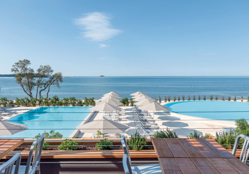 • Poolduo: Zwei Salzwasserpools mit Liegen und Schirmen strukturieren Eure Pausen.