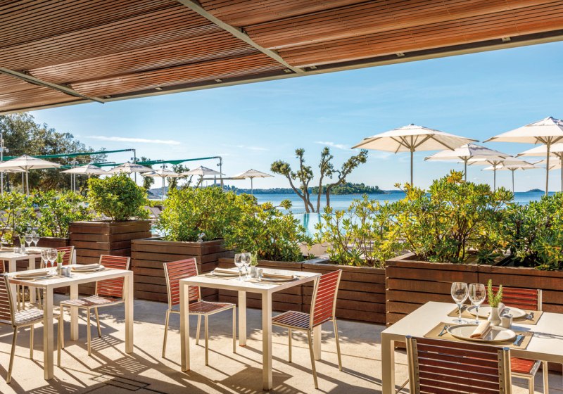 Erholung findet Ihr hier vor allem am Wasser: Zwei Außenpools mit Salzwasser, Liegen und Schirmen geben dem Tag ruhige Ankerpunkte. Die kurzen Wege zum Meer ergänzen das Bild, denn zwischen Garten, Terrasse und Ufer wechselt Ihr mühelos die Szenerie. So entsteht Ruhe ohne lange Umwege.