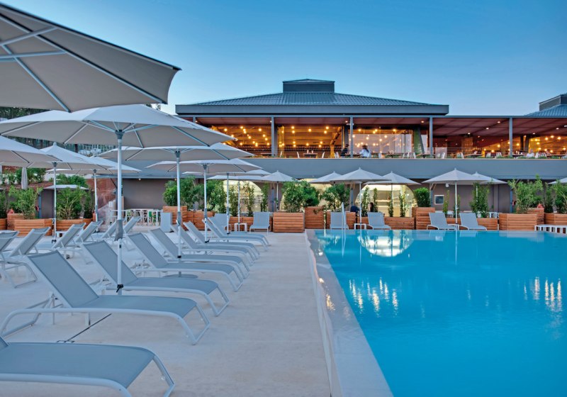 • Abendliche Stimmung: Terrassen und Strandbar schaffen lockere Treffpunkte nah am Wasser.